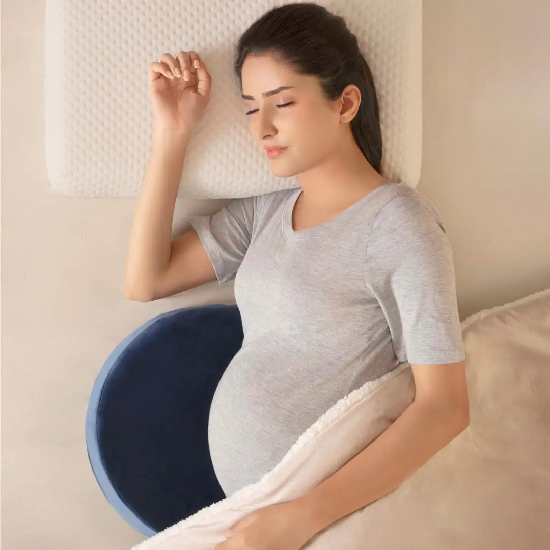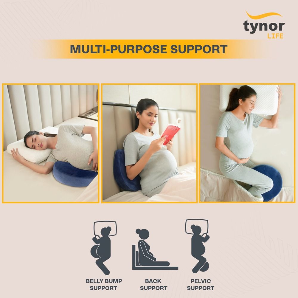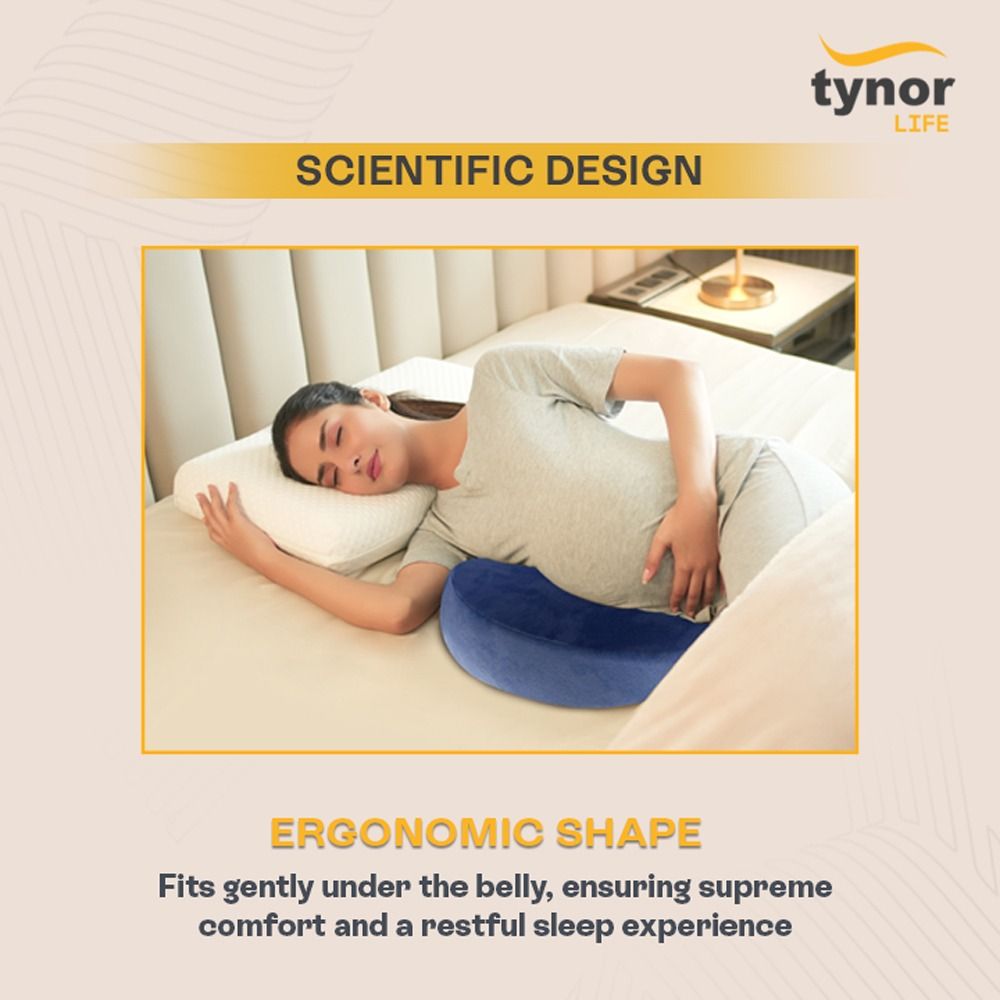 The Tynor Elite Pregnancy Memory Pillow is a scientifically designed maternity support pillow that offers gentle, ergonomic support to the belly bump while lying on your side—promoting restful, pain-free sleep throughout pregnancy. By filling the gap between the belly and the mattress, it effectively reduces pressure on the lower back muscles and spine.