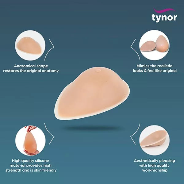 The Tynor Breast Prosthesis is a premium-quality artificial breast, designed to closely replicate the appearance, feel, weight, and softness of a natural breast. Made from high-grade, skin-friendly silicone, it delivers a realistic look and comfortable fit, helping restore confidence, balance, and body symmetry after mastectomy.