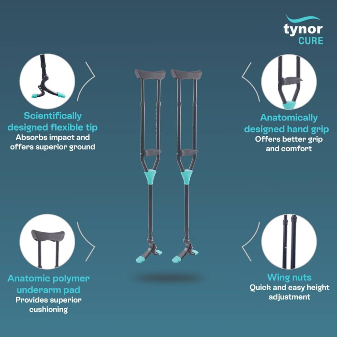 Tynor Skipper Axilla Crutch Black is designed to facilitate mobility during recovery, post-operative care, disability, fracture or injury to the lower extremities. According to the severity of the injury, it can be used for permanent or temporary periods in non-weight-bearing conditions.